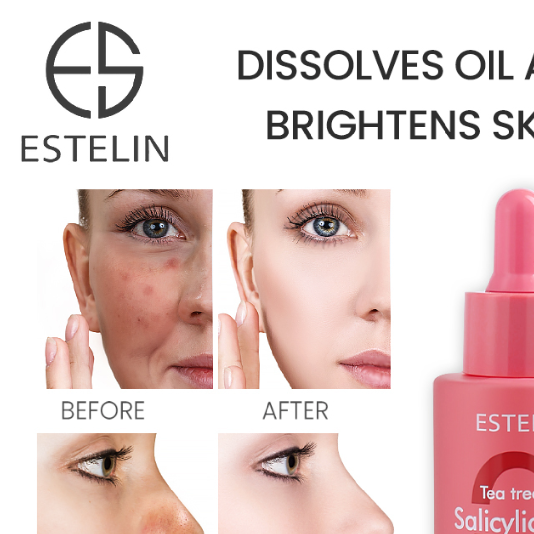 The Estelin Salicylic Acid & Tea Tree Oil serum calms down acne and blemishes with the power of tea tree oil that fights acne-causing bacteria and redness. Paired with Salicylic acid(a BHA), it effectively clears clogged pores, controls excessive oils and soothes your skin delicately. It restores the skin’s protective barrier to its optimum health leaving you with clear, acne-free skin.