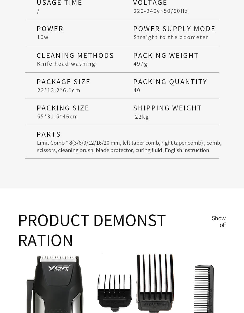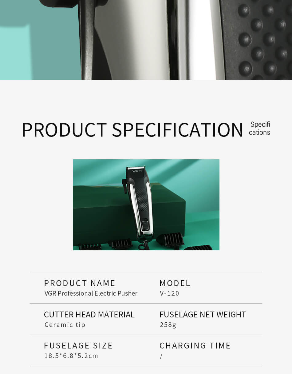 VGR V-120 Barbershop Bald Headed Hair Clippers Zero Gapped Detail Beard Shaver Trimmer